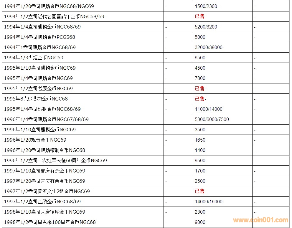 普通(精制)紀(jì)念幣交易