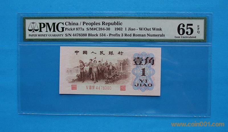 PMG 65E 背綠一角連號(hào) 帶“人”字暗記版  品相不錯(cuò)、圖案居中,不知為什么只給65