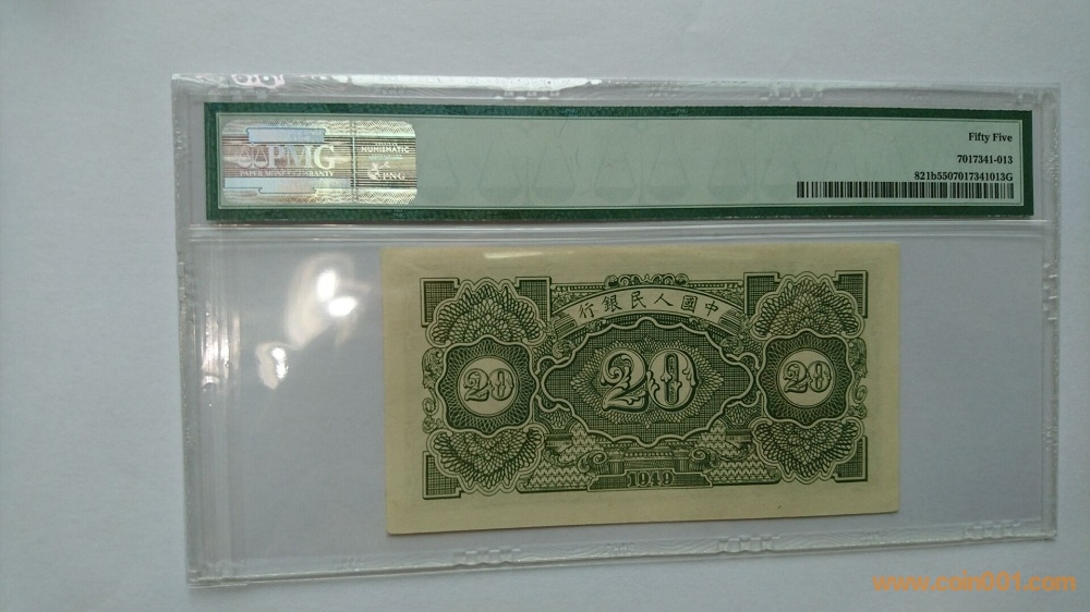 一版二十元立交橋,美國(guó)PMG本土評(píng)級(jí)PMG55分,評(píng)級(jí)幣編號(hào)為821b,是美國(guó)PMG公司給立交橋的稀少無(wú)自由版編號(hào),入殼非常少,截止6月30日,美國(guó)PMG 數(shù)據(jù)庫(kù)中821b無(wú)自由版評(píng)級(jí)54張,821a評(píng)級(jí)388張,稀少程度不言而喻。全新原票送評(píng),因嚴(yán)評(píng)給了55分,顏色油墨濃厚鮮艷,票面細(xì)節(jié)紋路清晰,立體感強(qiáng),票面和紙張完美,唯一四角稍差點(diǎn),要不可評(píng)64分以上。。