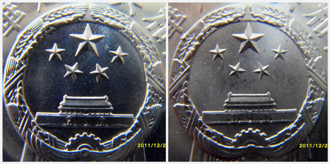 ???????? 除上述主要的典型區(qū)別之外,“平版”與“凸版”還有諸如“民”字的提勾、“共”字的撇、“中”、“華”筆劃底部等寫(xiě)法也有細(xì)微的區(qū)別,在此不再一一贅述。據(jù)筆者收集和研究,少見(jiàn)年份一個(gè)年版號(hào)同時(shí)鑄造有平版和凸版兩種版別分幣,1分為79、80、81、82、84年號(hào);2分為81、82、83、84年號(hào);5分為81、83、84年號(hào)。