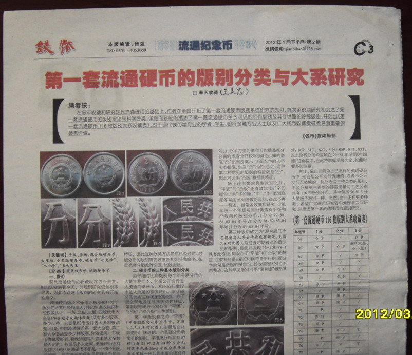 【說(shuō)明】:在多年收藏和研究現(xiàn)代流通硬幣的基礎(chǔ)上,本文在全國(guó)開(kāi)拓了第一套流通硬幣版別系統(tǒng)研究的先河,首次系統(tǒng)地研究和論述了第一套流通硬幣的版別定義與科學(xué)分類,詳細(xì)而系統(tǒng)的闡述了第一套流通硬幣至今可見(jiàn)的所有版別及其存世量的珍稀級(jí)別,并列出《第一套流通硬幣116枚版別大系收藏表》,對(duì)于現(xiàn)代錢幣學(xué)專業(yè)的學(xué)者、學(xué)生、銀行金融專業(yè)人士以及廣大錢幣收藏愛(ài)好者具有重要的參考價(jià)值。但由于本人水平所限,錯(cuò)誤紕漏之處在所難免,請(qǐng)廣大流通硬幣愛(ài)好者給予賜教和雅正。除了本網(wǎng)之外如果您需要在其它報(bào)刊、網(wǎng)站等媒體或場(chǎng)合引用本文請(qǐng)注明“本文來(lái)源于:奉天收藏新浪博客http://blog.sina.com.cn/u/1970958207,或者中國(guó)現(xiàn)代錢幣網(wǎng)http://eetuan.com/,作者:奉天收藏(王美忠)謝謝。