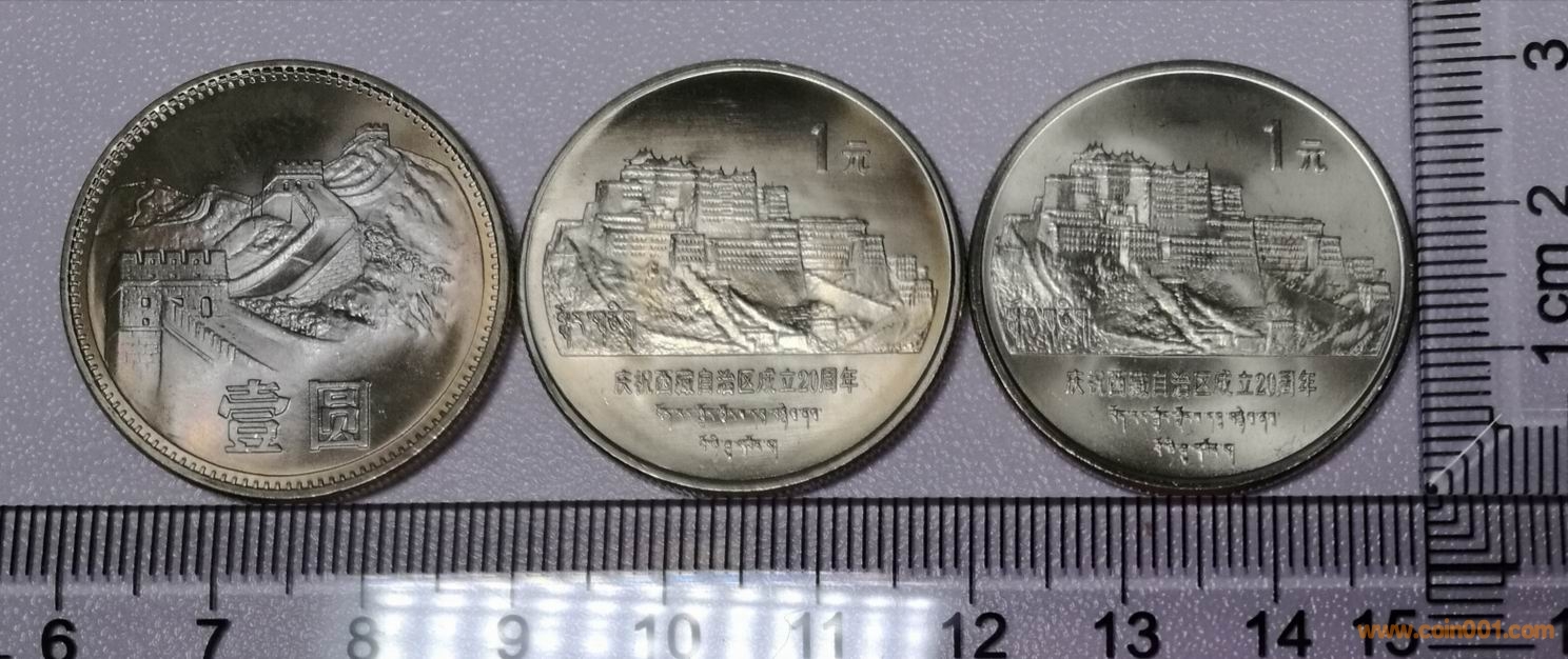 1985年長城幣小星版、老西藏幣遠(yuǎn)廓小圖版、老西藏幣近廓普制版對比圖片