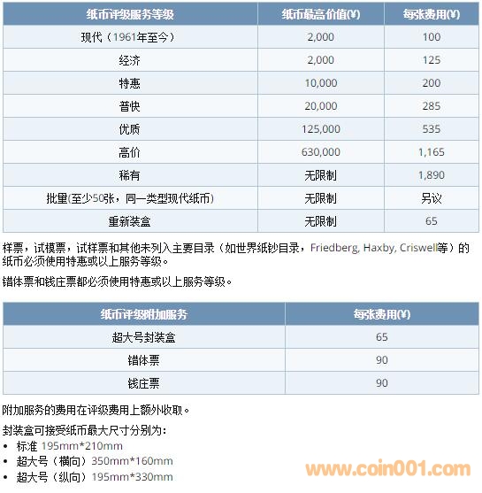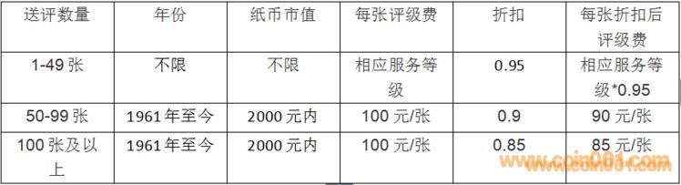 現(xiàn)代紙幣送評折扣前后收費標(biāo)準(zhǔn)