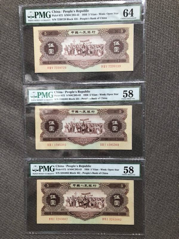 黃五元評級幣三張,18 ..