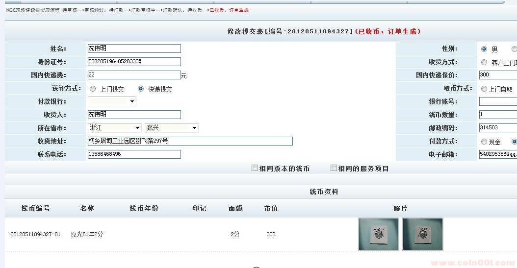 這個(gè)方法養(yǎng)護(hù)后的分幣分別在幾家網(wǎng)站鑒定都鑒定為品相不錯(cuò)、品相良好等評(píng)價(jià)。最近,本人嘗試性養(yǎng)護(hù)復(fù)原了一枚早期流通幣王61年2分,而且成功地通過(guò)廣州國(guó)際NGC專家的層層鑒定審核,送美國(guó)總部進(jìn)行NGC錢幣評(píng)級(jí).(詳情請(qǐng)看商品中的GCN錢幣評(píng)級(jí)服務(wù)單)
