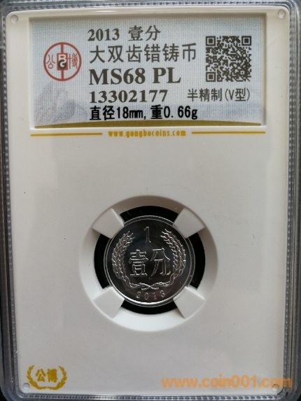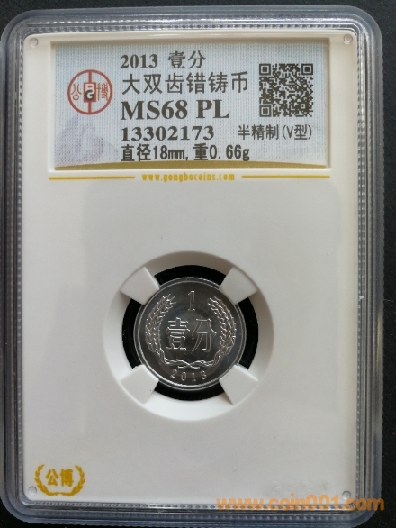 2013壹分 131大雙齒錯幣  GBCA MS68PL 不設保留價!