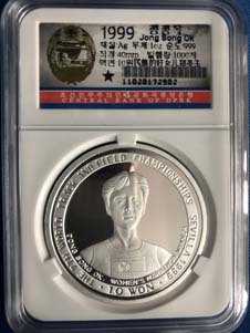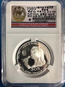 22.全新 1999年 朝鮮-民族的好女兒鄭圣玉 紀念銀幣 1oz999純銀