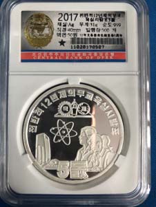 2.全新 2017年 朝鮮-12年義務(wù)教育制度5周年 紀念銀幣 31g999純銀