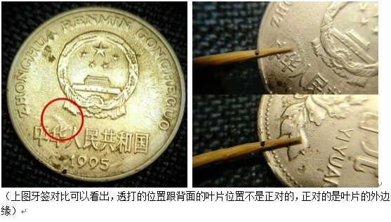 樓主最好用圖來(lái)說(shuō)明。按照樓主的說(shuō)法,這個(gè)鼓起的邊要略大于另一邊的圖案。但是至少在分幣上不是這么回事。下面箭頭部分是透打在背面的麥穗,透打部分沒(méi)有超出正面圖案的邊界。
