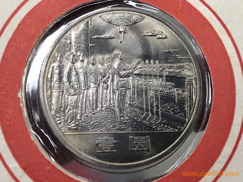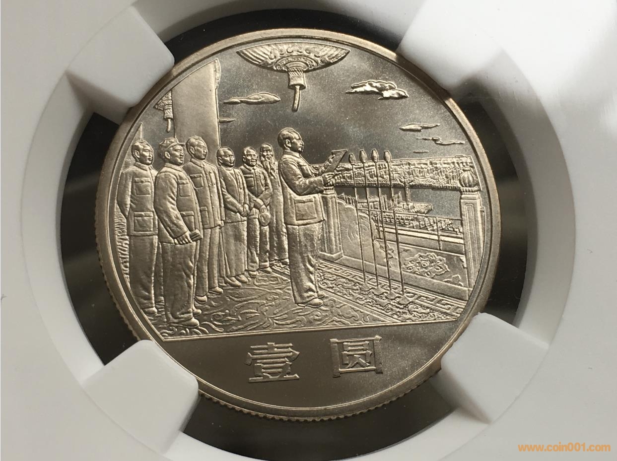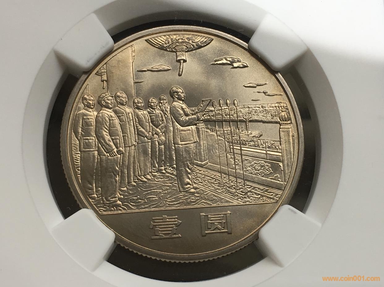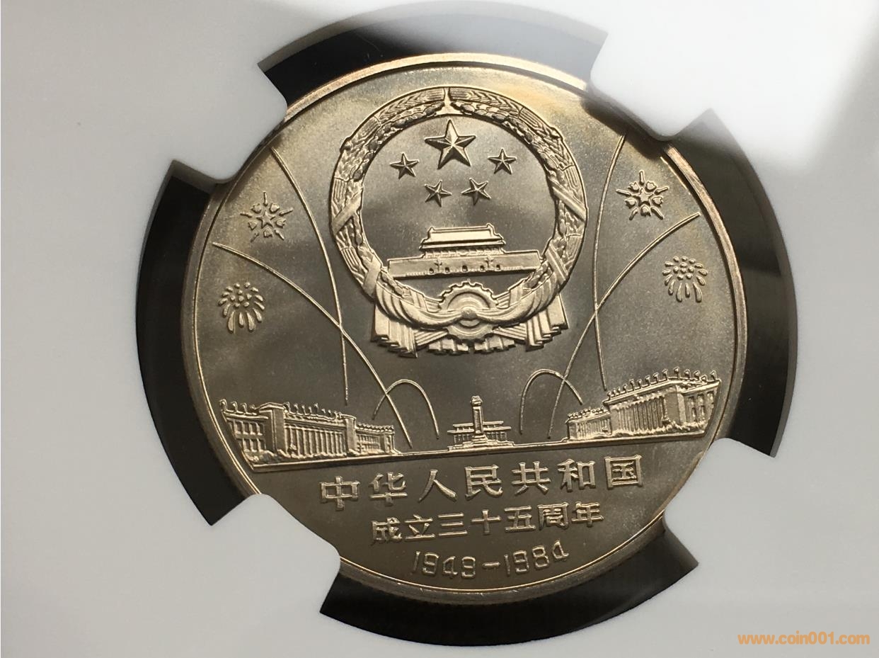 卡紙裝新中國成立35周年開國大典上海版精制幣分階段封裝,以上這種狀態(tài)多是中、晚期鑄造