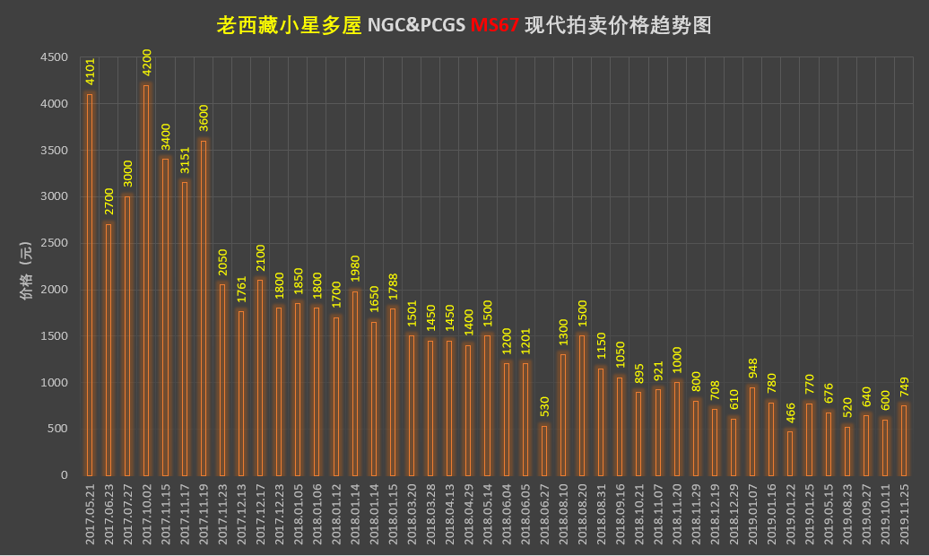 MS67小星多屋的價(jià)格從年初第一次拍賣(mài)的