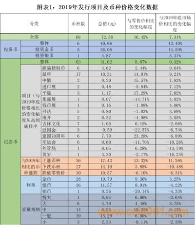 另外從附表1中可以看到,在2019年板塊的紀念幣項目中,到2020年6月底共有8個項目整體性跌破零售價,占整個15個項目的53.33%。