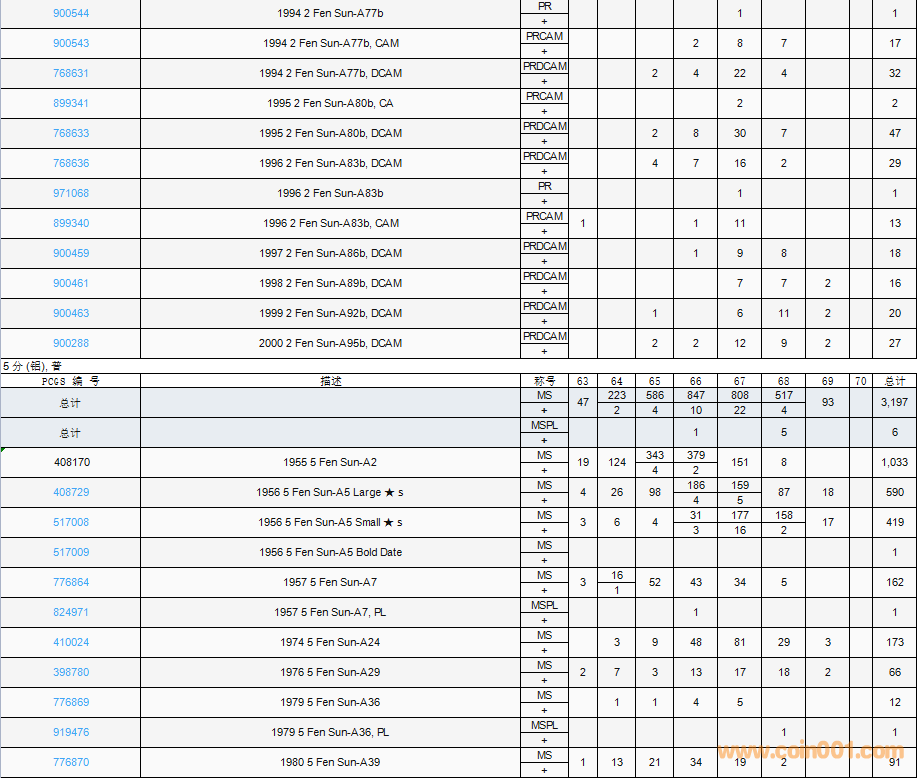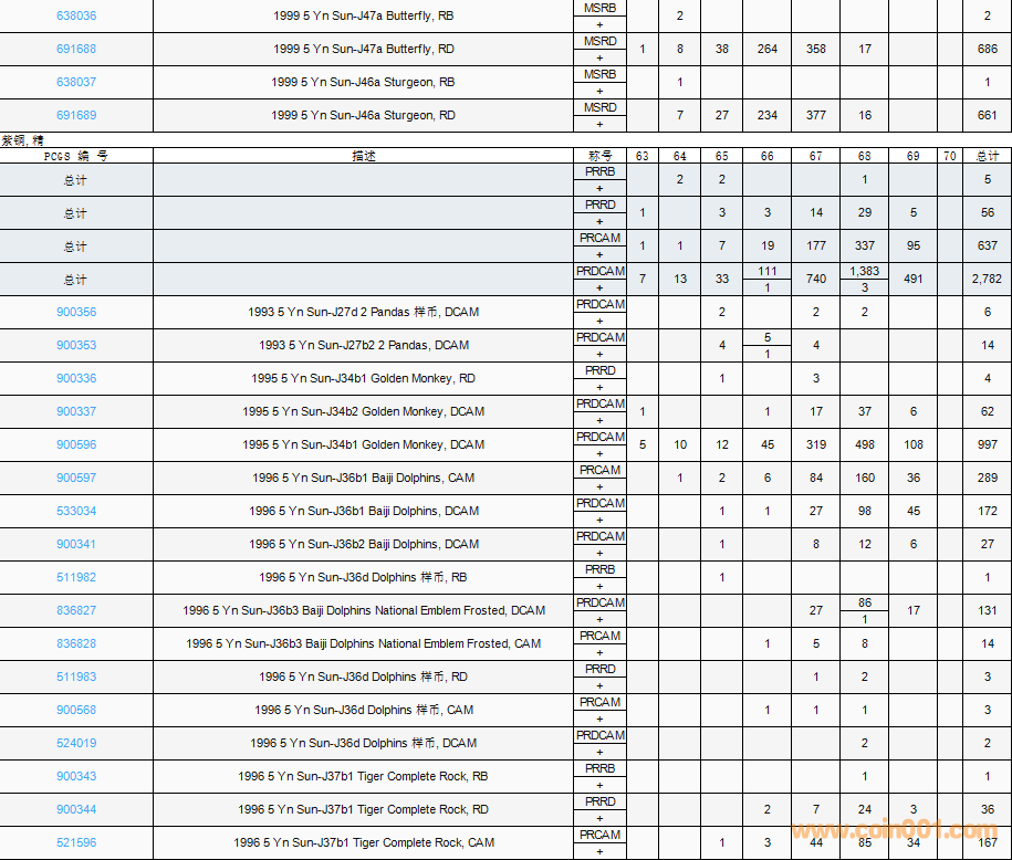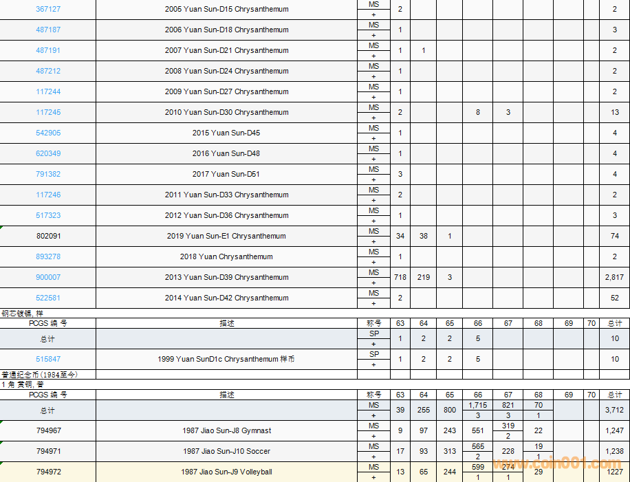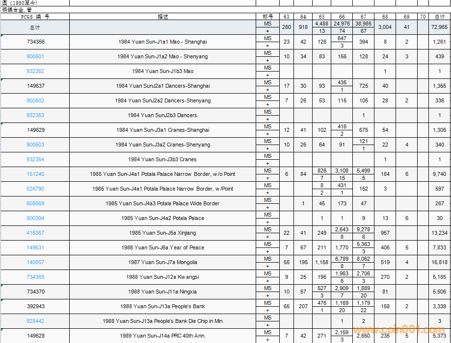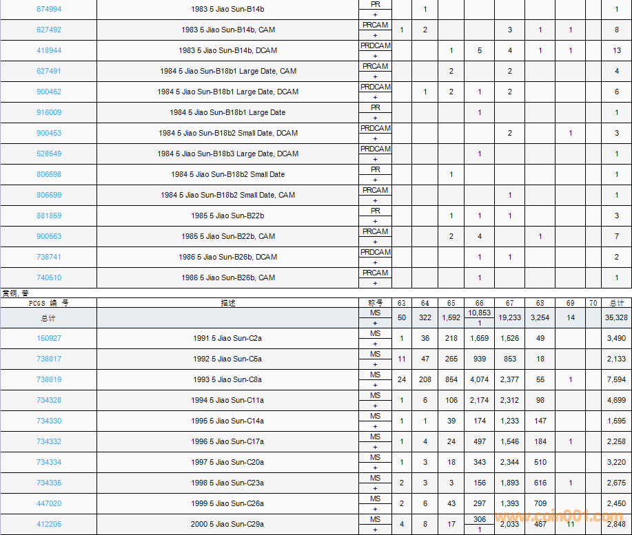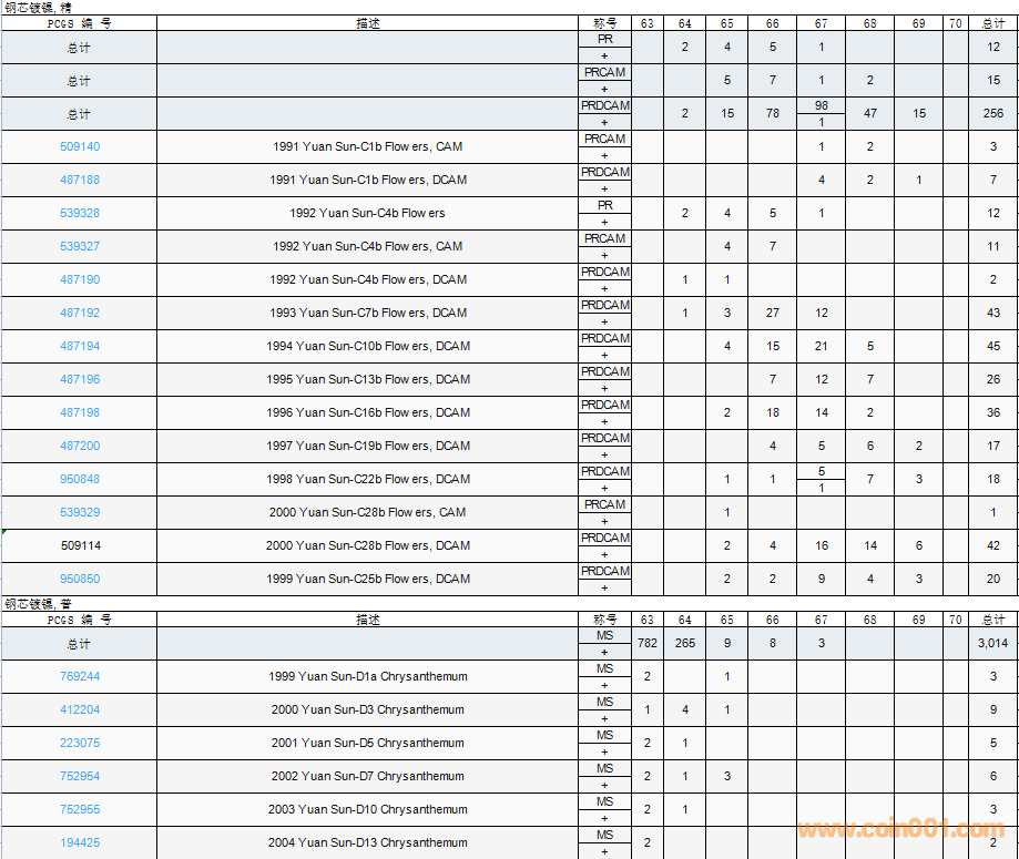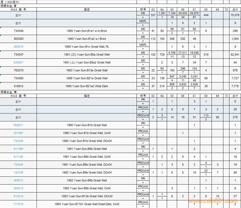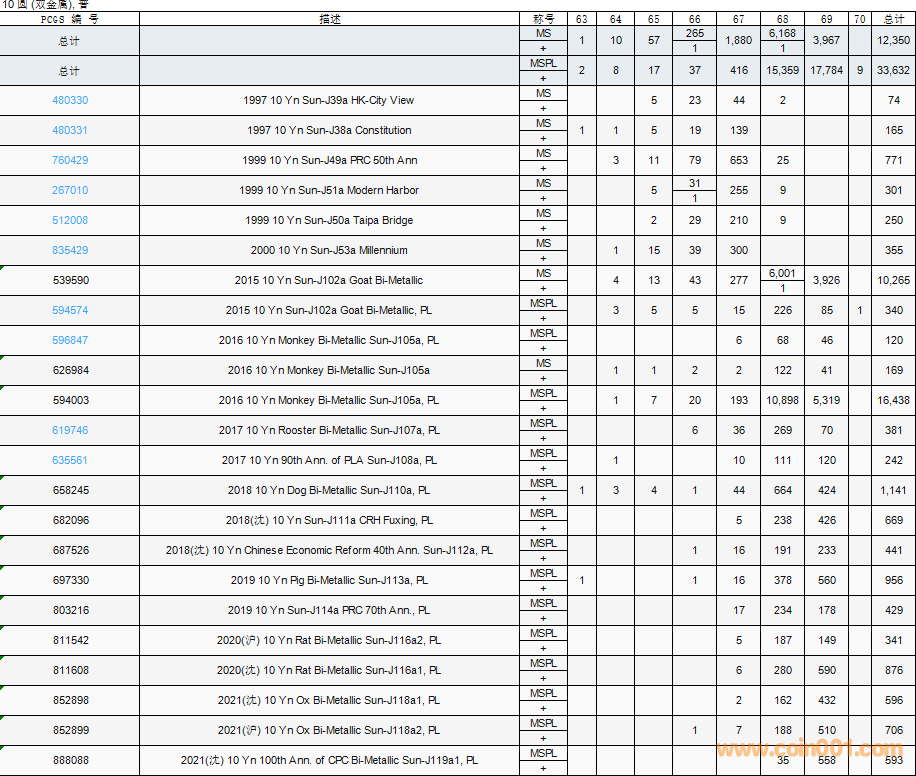 PCGS硬幣評(píng)級(jí)數(shù)量報(bào)告( ..