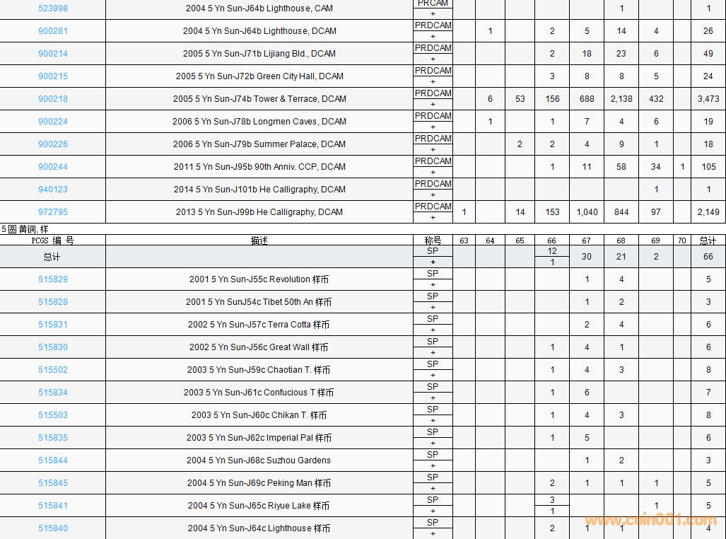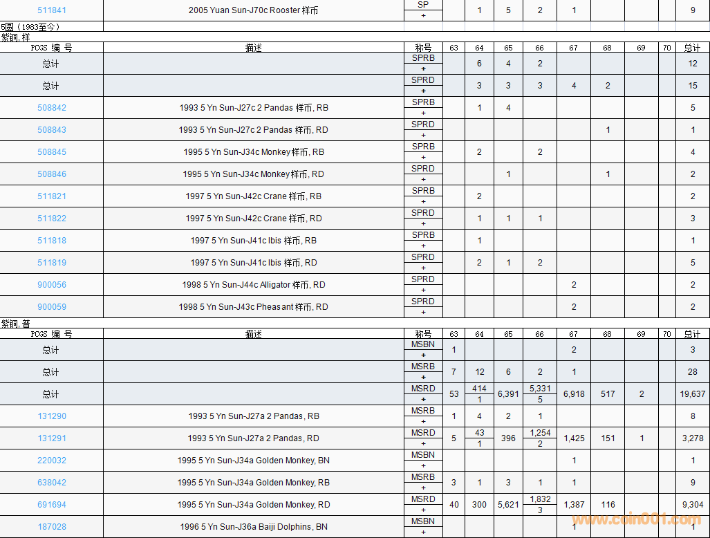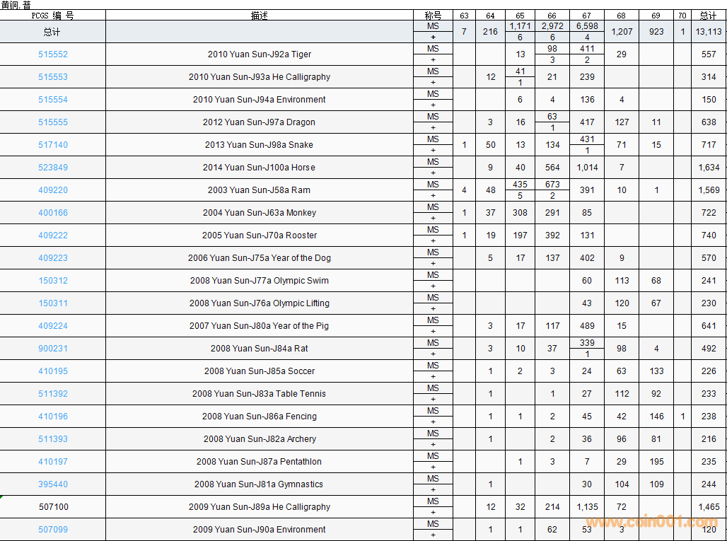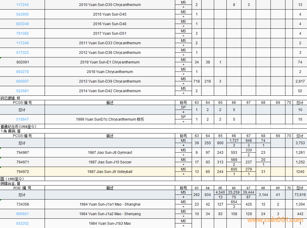 PCGS硬幣評(píng)級(jí)數(shù)量報(bào)告( ..