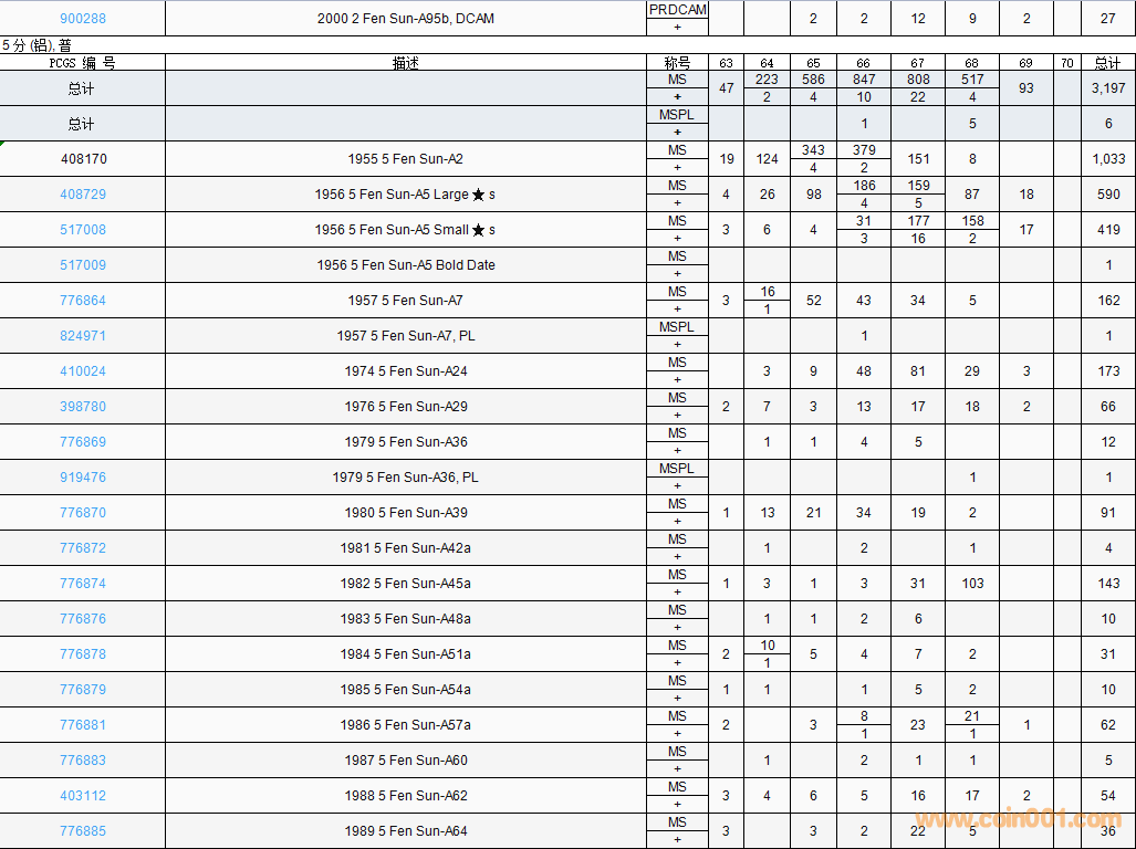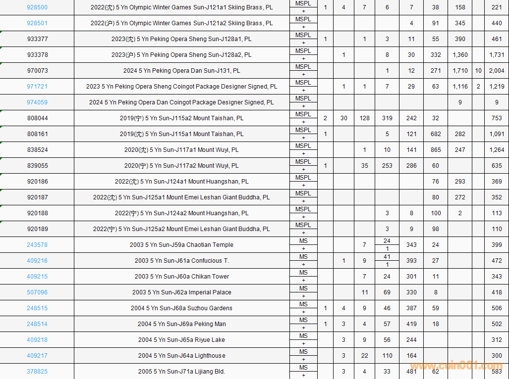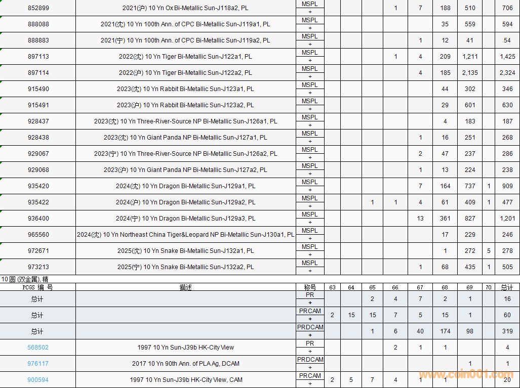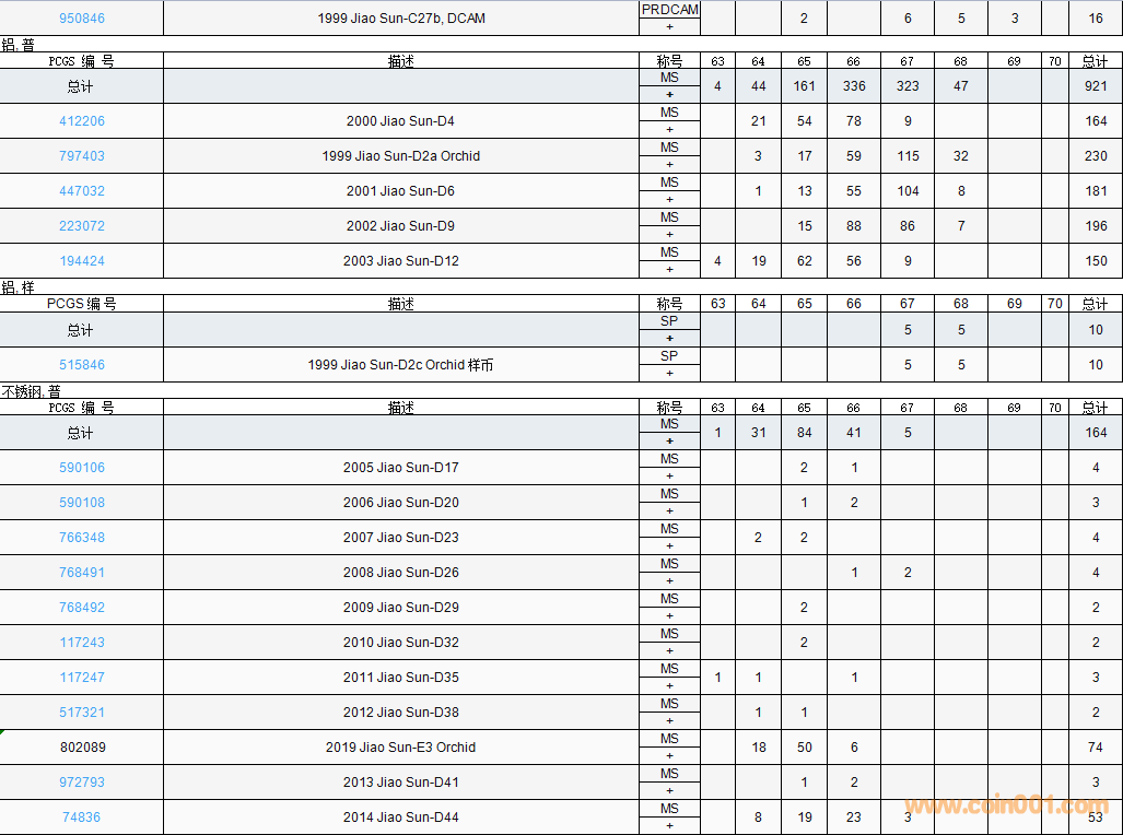 PCGS硬幣評(píng)級(jí)數(shù)量報(bào)告( ..