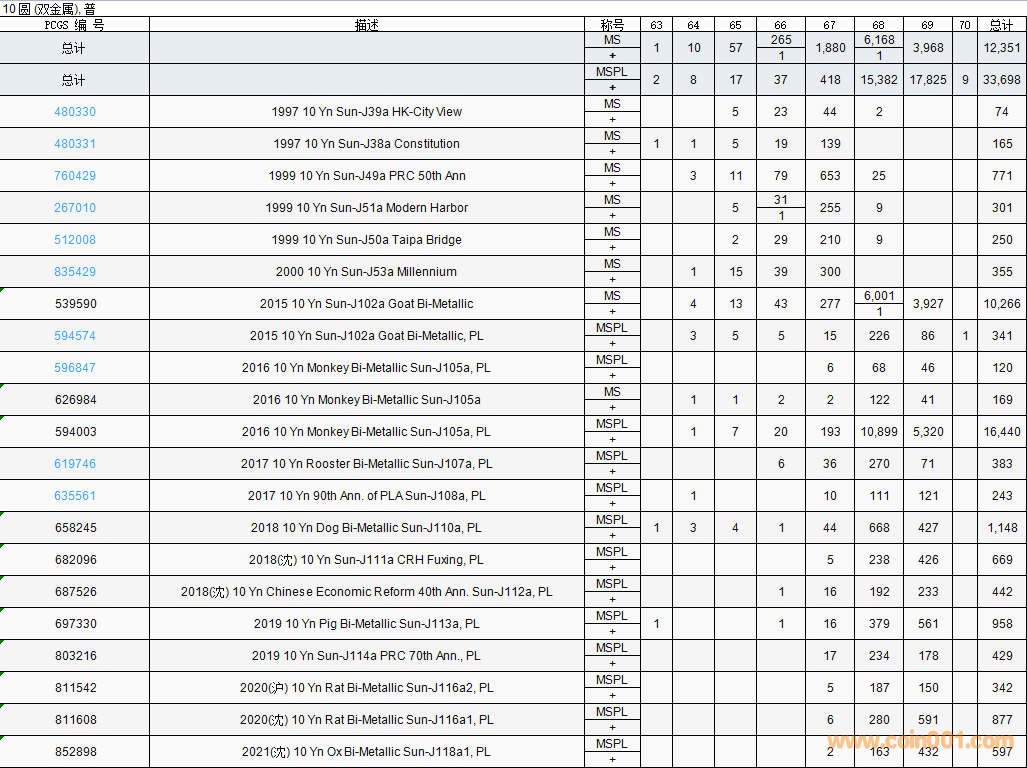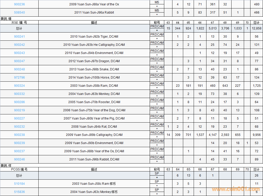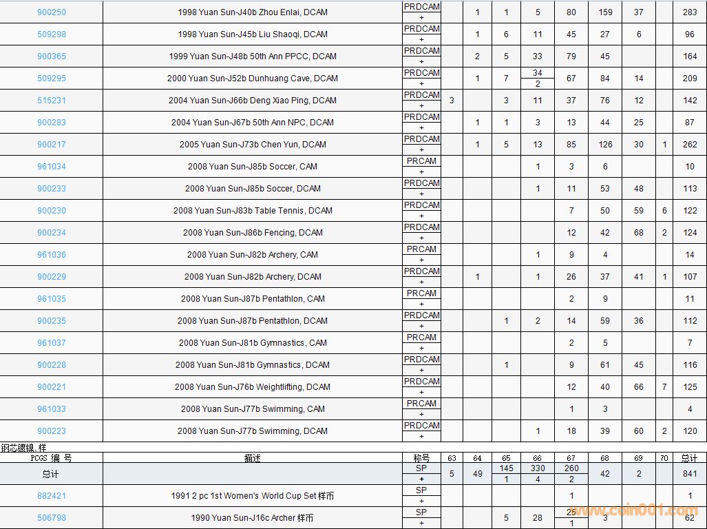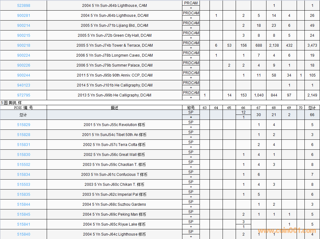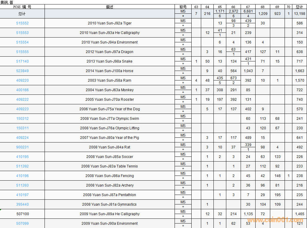 PCGS硬幣評級數(shù)量報告( ..