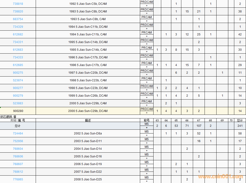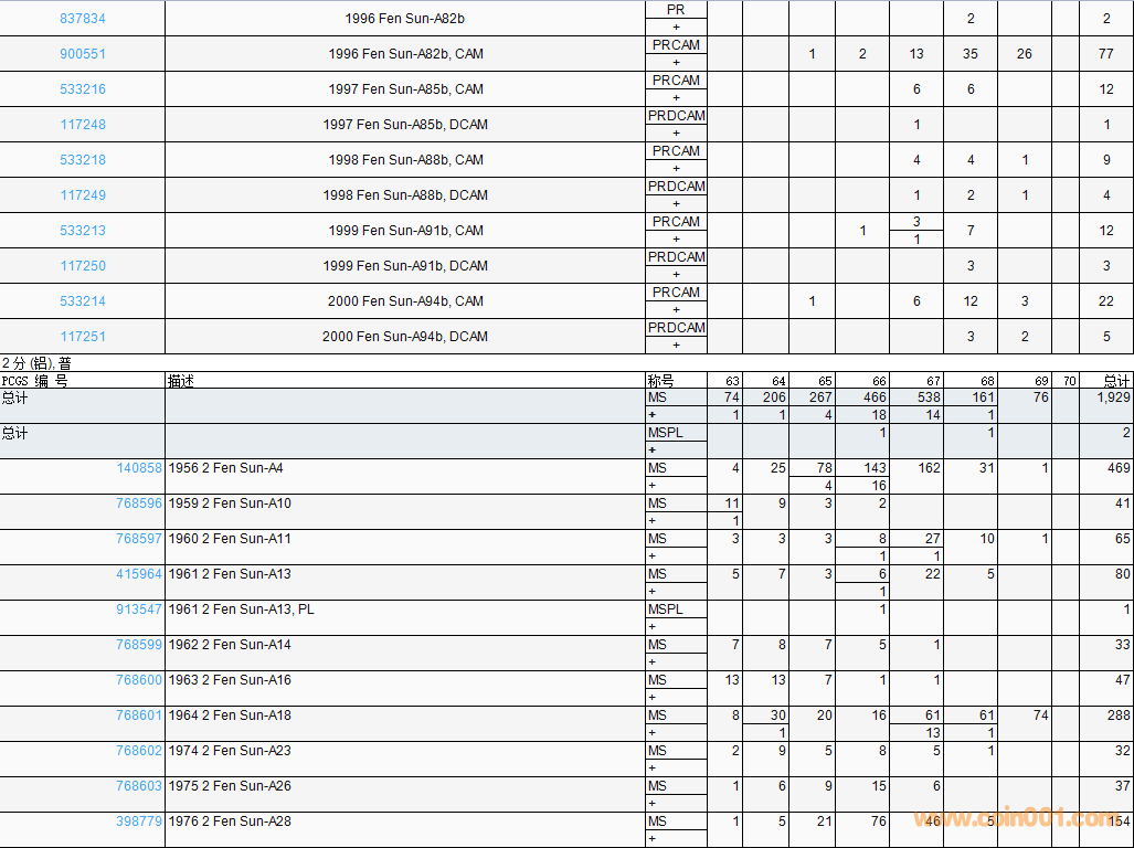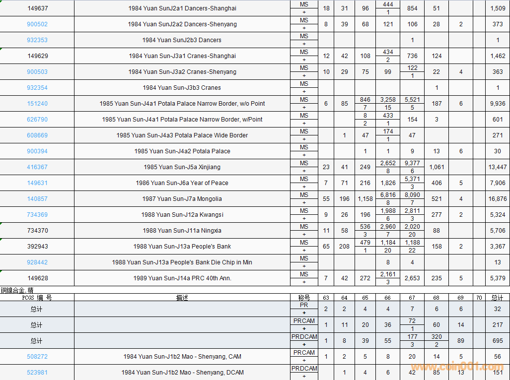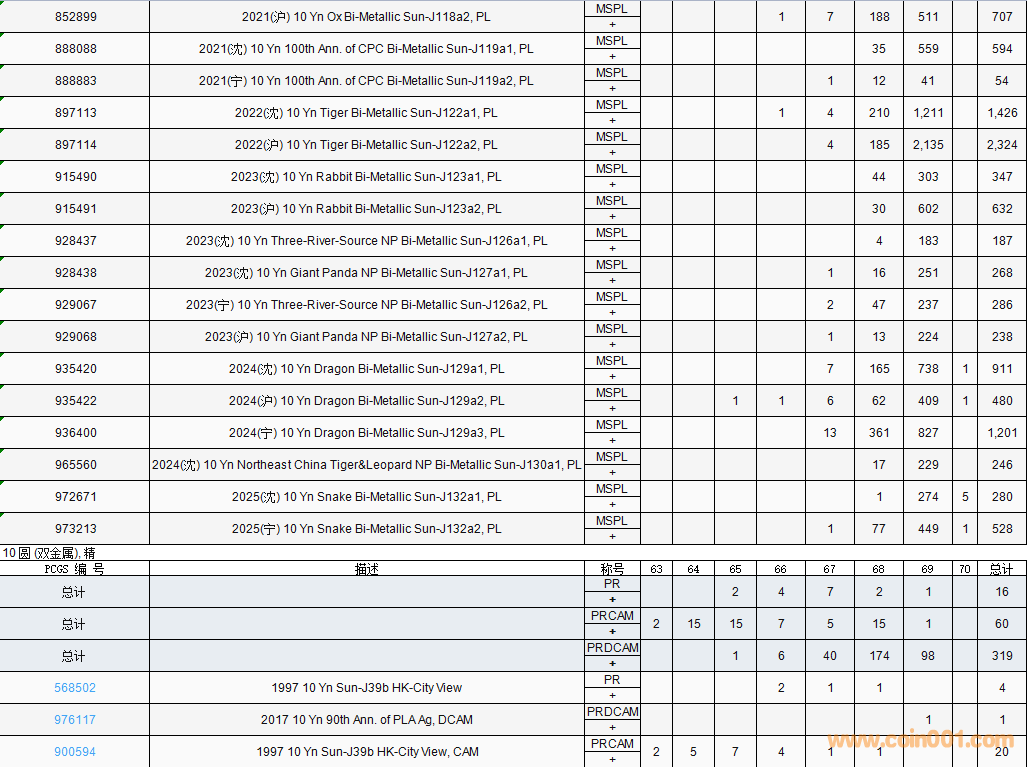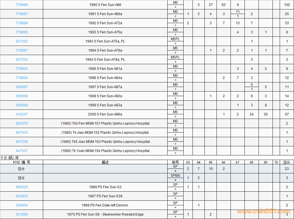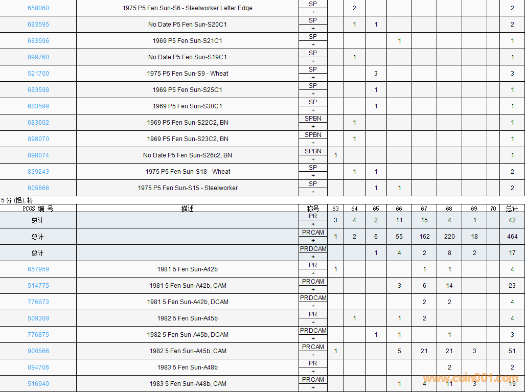 PCGS硬幣評級數(shù)量報告( ..