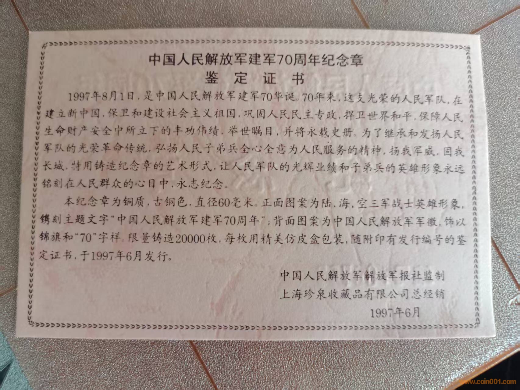 建軍70周年紀(jì)念銅章