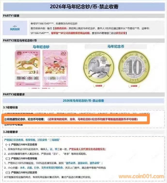 一、建議中:“各類運(yùn)輸、快遞、物流公司等不得拒絕收寄紀(jì)念幣?!蔽覈多]政法》需要修正,1990年11月12日發(fā)布并施行予以補(bǔ)充,應(yīng)與時(shí)俱進(jìn)。