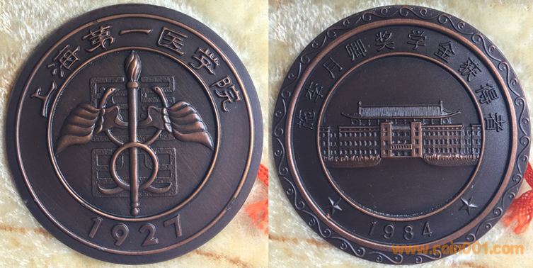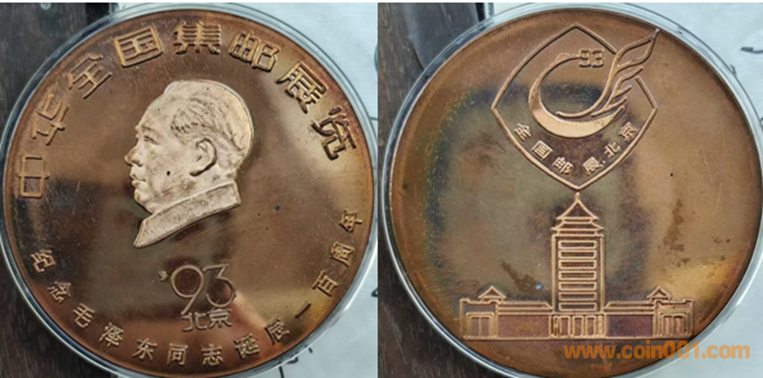 1989年上幣制造,紫銅上色60MM。正面為主題文字,反面為雙手托舉徽標(biāo)。
