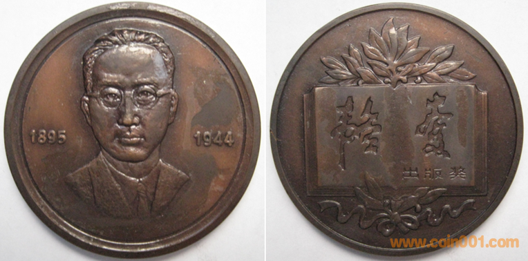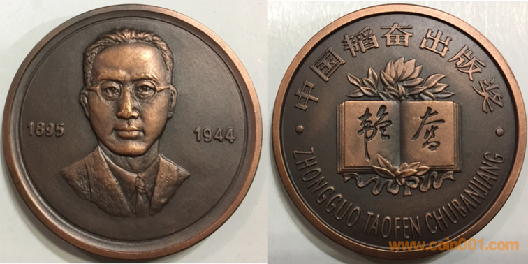 1991年上幣制造,紫銅上色60MM。正面為畢昇頭像,反面為書本圖案。