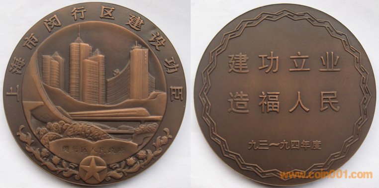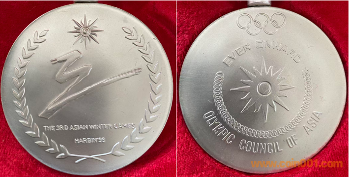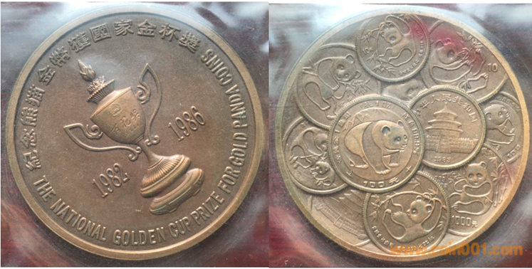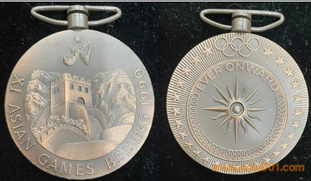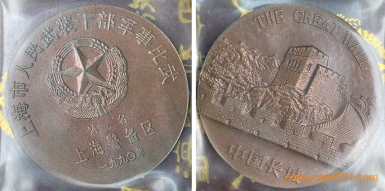 1990年上幣制造。紫銅鍍金普制(第一名)。紫銅鍍銀普制(第二名),紫銅上色(第三名以下)。三種版別均為60MM。正面為主題文字,反面為長城。