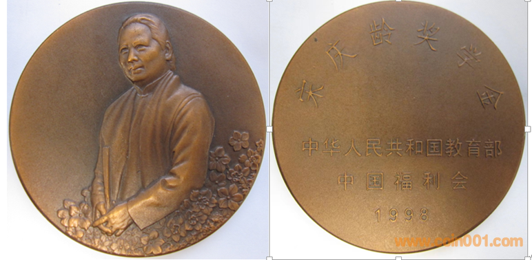 1989年上幣制造,紫銅鍍銀普制70MM。正面為主題文字,反面(單項獎)和平鴿懷抱少女、(集體獎)和平鴿。