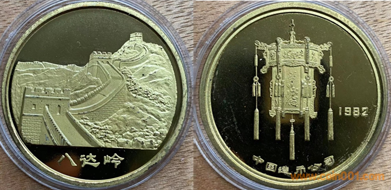 1982年沈幣制造,黃銅精制、黃銅普制。正面為長城,反面為宮燈。