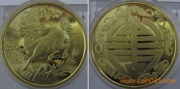 1991年上海造幣廠制造,紫銅上色、紫銅普制鍍金。正面為老鷹,反面為圖案。