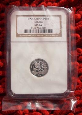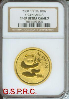 還有一些年份的熊貓普制金銀幣,也存在MS被給了PF的情況,如一枚被評(píng)為PFUC的2000年1盎司普制金貓,ebay賣家因?yàn)樗鼧?biāo)識(shí)錯(cuò)誤,喊價(jià)10萬美元,對(duì)此我們只能付之一笑了。 (這里順便說下,原則上NGC和PCGS是不給普制幣ultra cameo這樣的標(biāo)識(shí),但他們也偶爾犯錯(cuò)給普制幣加上超浮雕的標(biāo)識(shí))