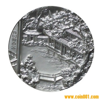 去年初秋一個偶然的機會,在著名現代幣章收藏家黃瑞勇教授主持的上海東方國際第一屆中外章牌專場拍賣會上,我邂逅了它---中國古典園林豫園銀章,竟然讓我生出了一生與之廝守的渴望。章面上悠悠的風情與這幽幽的風雅水乳@交融,讓人心境空明,好想化作園中石,一起感受歲月的天地乾坤,忘卻紅塵的紛紛擾擾。