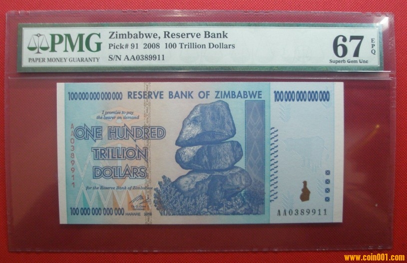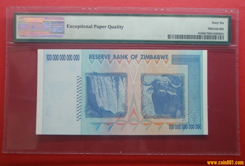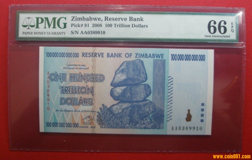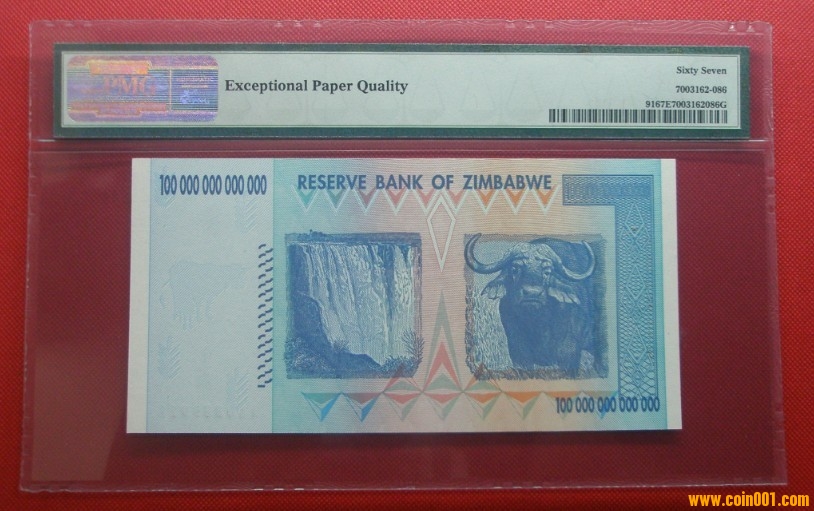 售:全球最大面額紙鈔津巴布韋100萬(wàn)億第納爾PMG評(píng)級(jí)幣