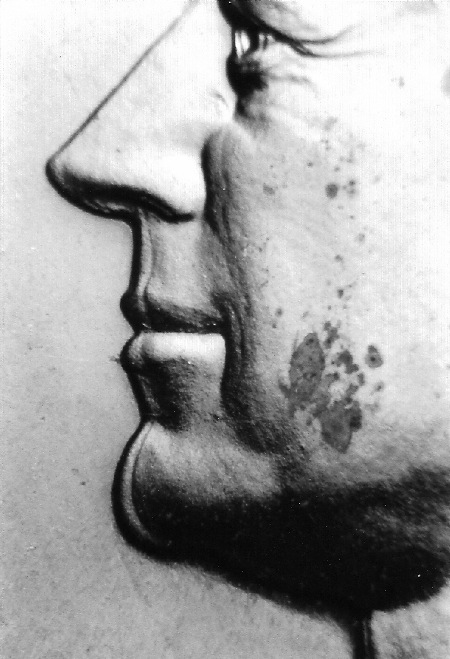 以上是一枚 1967 年肯尼迪半美元硬幣上肯尼迪側(cè)面像的機(jī)械復(fù)打現(xiàn)象。