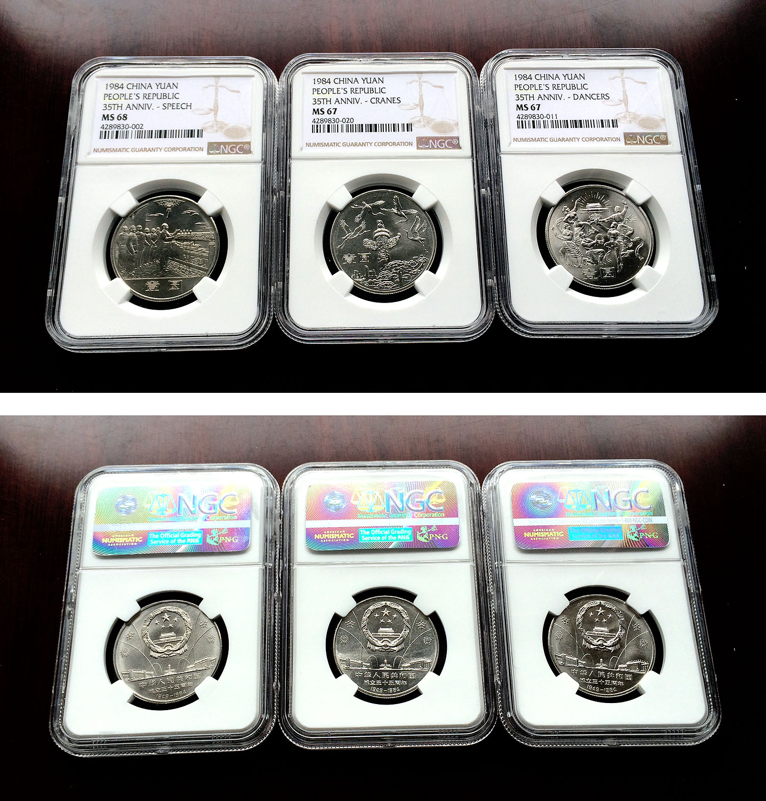 世乒賽PF68UC三枚,PF67UC一枚,PF68UC的1850元/枚,PF67UC的1250元。
