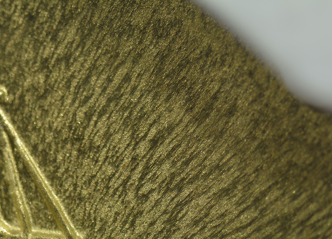 坯餅在壓印過程中產(chǎn)生金屬流動,流動的金屬在工作模上造成細(xì)小的擦痕。這些擦痕被壓印在后來的幣面上,形成鑄紋。金屬流動不是造成鑄紋的直接原因,而是間接原因。把鑄紋的起因比作壓面團起皺完全不得要領(lǐng)。