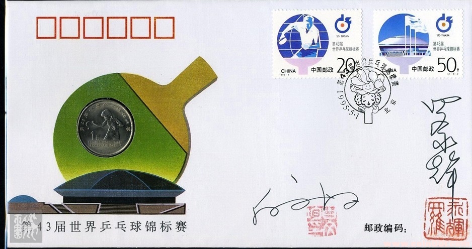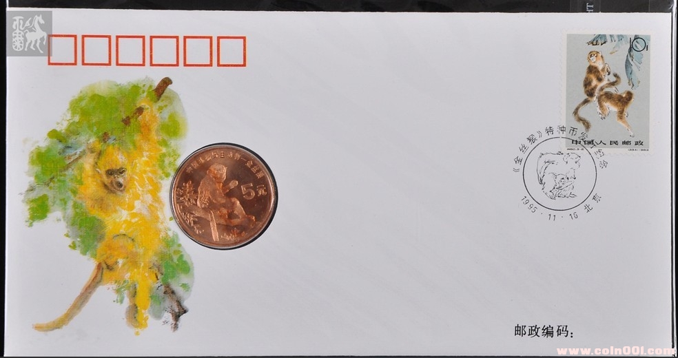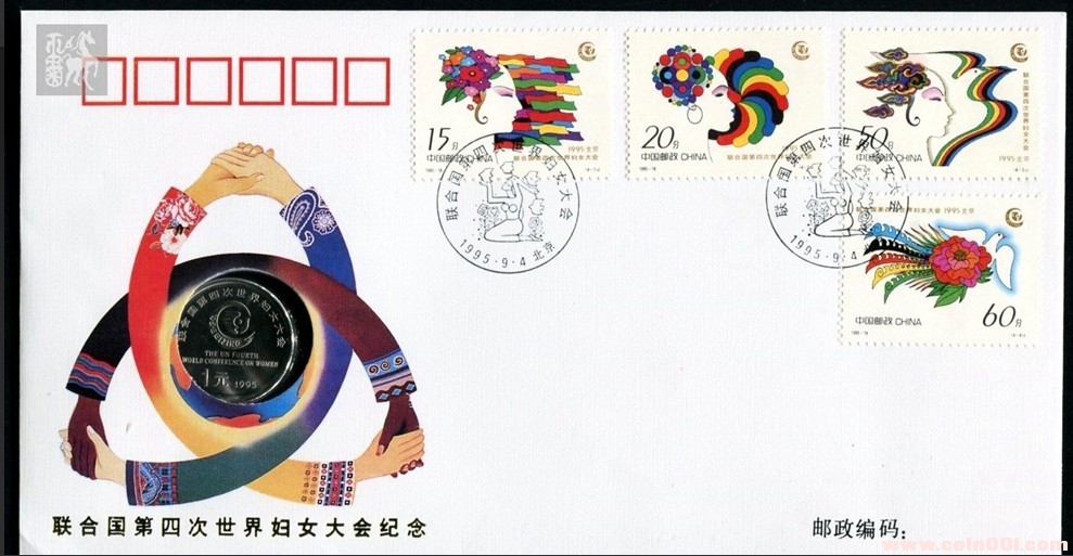封嵌第十一屆亞運(yùn)會(huì)《射箭》流通紀(jì)念幣一枚,面額1元。貼J172(6-1,6-2,6-6)郵票各一枚。