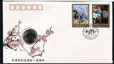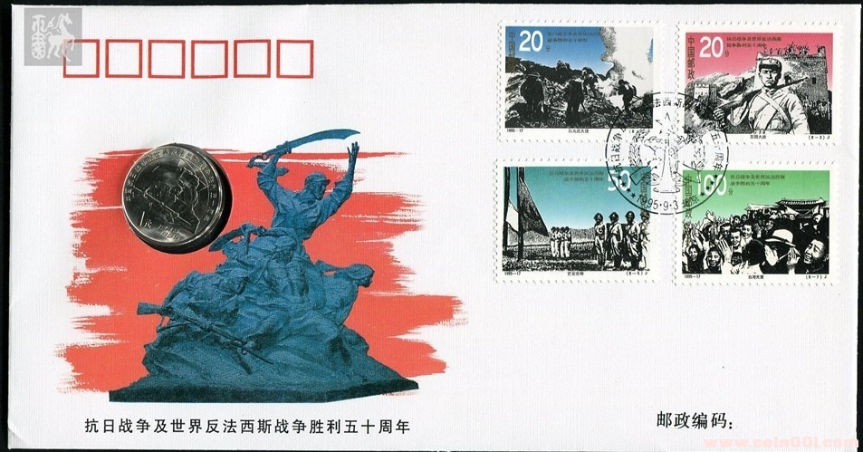封嵌第十一屆亞運(yùn)會(huì)《舞劍》流通紀(jì)念幣一枚,面額1元。貼J172(6-3,6-4,6-5)郵票各一枚。