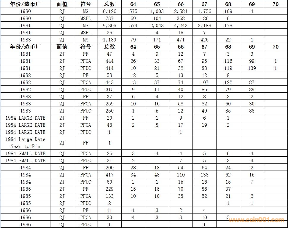 NGC硬幣評級數(shù)量報告 ..