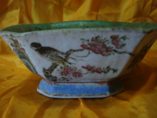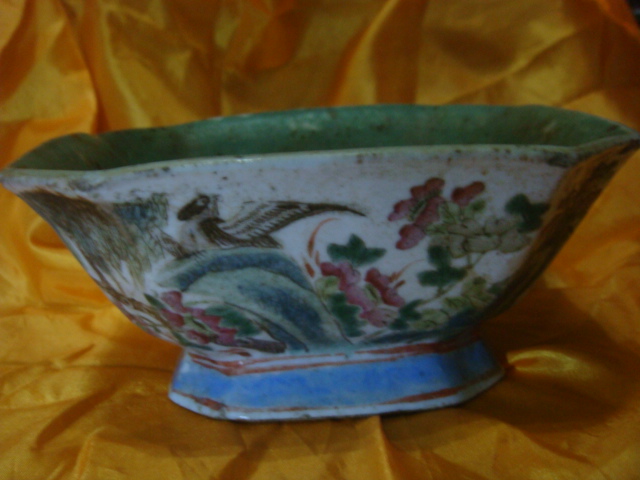 粉彩花鳥紋方形供碗
