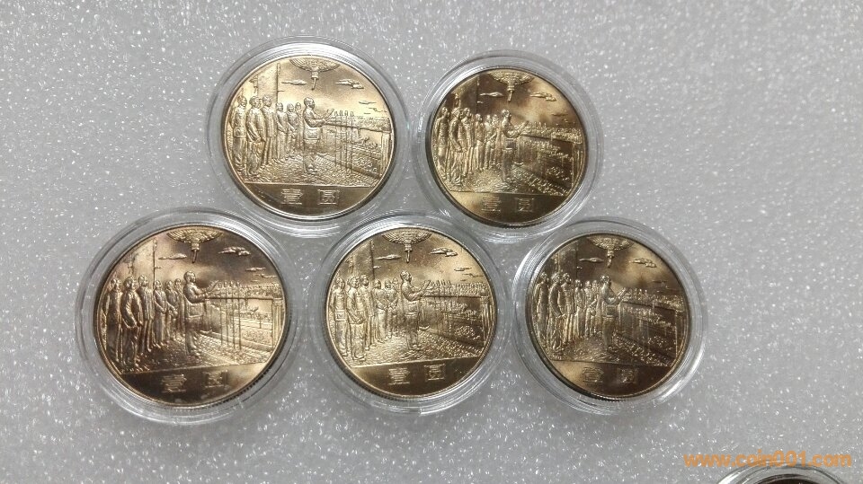 有人會懷疑有沒有這種紀念幣,前幾年本人在網(wǎng)上買到一卷普制歡慶(還余下二十多枚),打開一看,直齒邊,再看幣面,弧線不頂邊。黃油光,漂亮、光澤和上海版完全一致。再仔細看邊齒,和沈陽版比較,又不完全一樣。這卷歡慶邊齒直齒,但非常規(guī)整,厚薄一致。沈陽版的直齒邊厚薄不一致,就是精制幣也是厚薄不勻。請大家討論,這幾枚歡慶是沈陽版還是上海版?下面看圖。