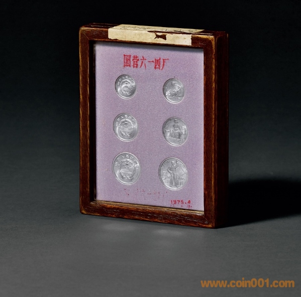 簡(jiǎn)介 1975年第二版人民幣硬分幣“工農(nóng)學(xué)”未采用稿試鑄樣幣1分、2分、5分二套計(jì)六枚,鋁質(zhì),原封裝于國(guó)營(yíng)六一四廠木盒之內(nèi),盒子頂端貼有深藍(lán)色鋼筆書(shū)寫(xiě)該廠設(shè)計(jì)部門(mén)負(fù)責(zé)人姓名之封條,開(kāi)啟時(shí)封條有斷裂,為珍罕的人民幣樣幣及貨幣文物、百不一遇的博物館級(jí)珍品,二套同時(shí)出現(xiàn),正、背二面展示,可遇而不可求,完全未使用品