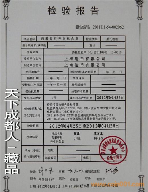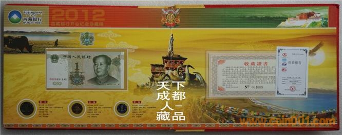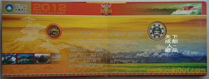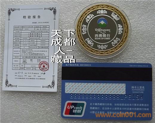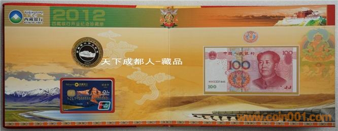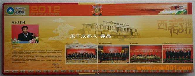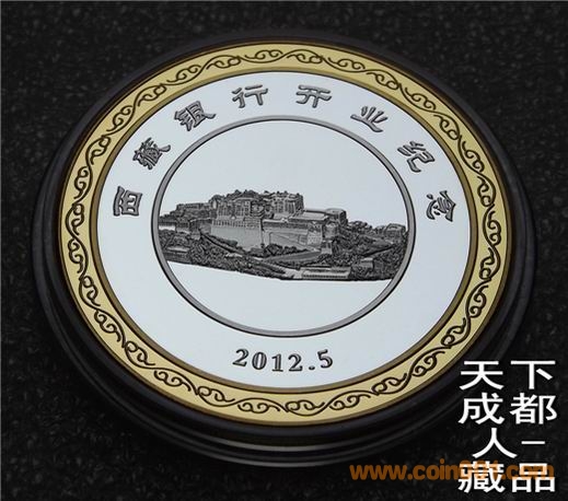 [font=宋體_gb2312;] 該銀行銀章正面中間圖案為西藏標志性建筑之一“布達拉宮”圖,外圈鐫刊“西藏銀行開業(yè)紀念、2012.5”中文字樣;背面中間為西藏銀行標識圖、刊“西藏銀行”中/英/藏文字樣,四周飾以8個吉祥物圖;銀行雙色銀章權(quán)威鑄造,隨附紀念幣、第五套紙幣及新三花硬幣,具有較高鑒賞收藏價值(品如實物圖):