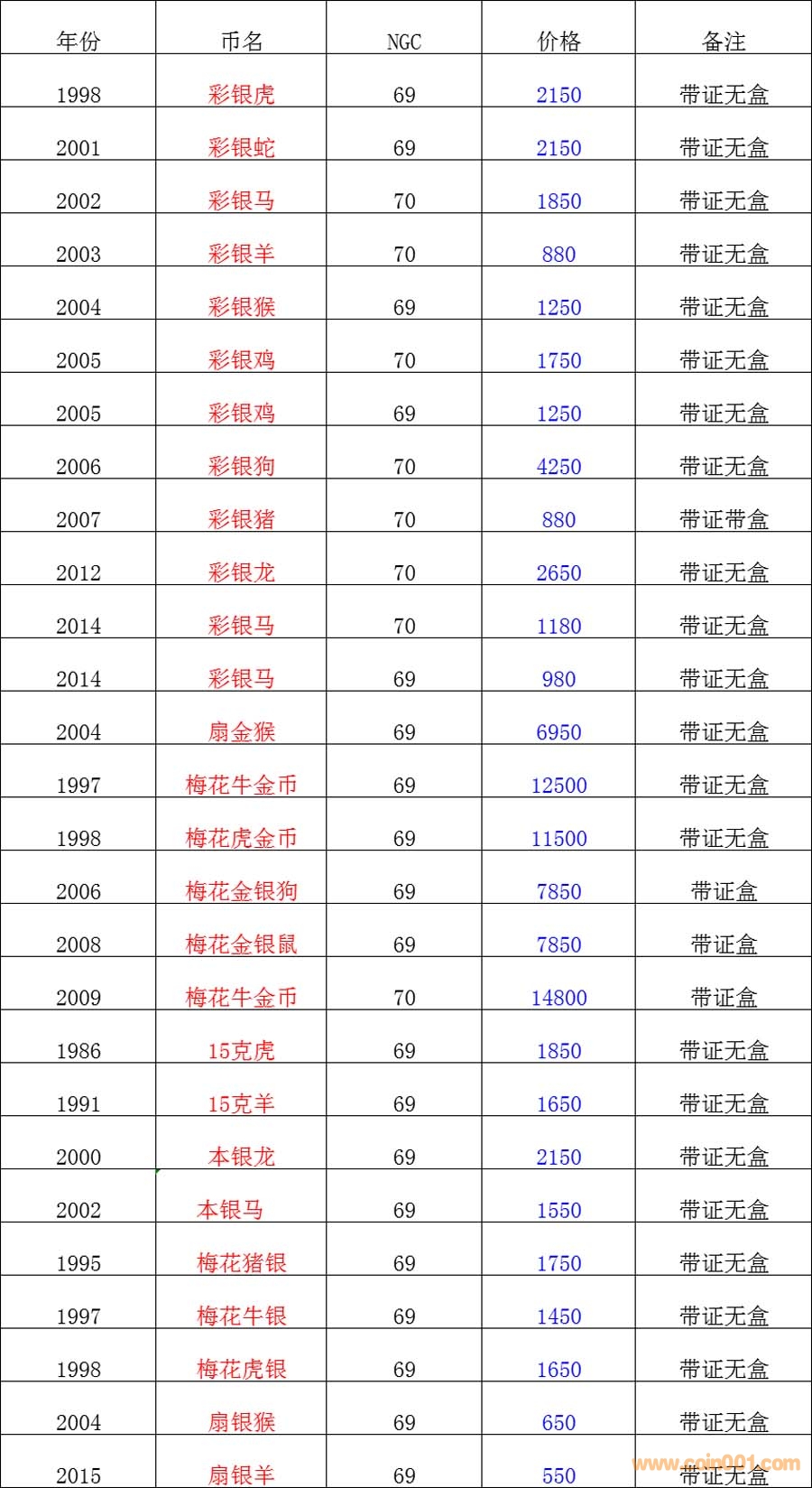 普通(精制)紀(jì)念幣交易