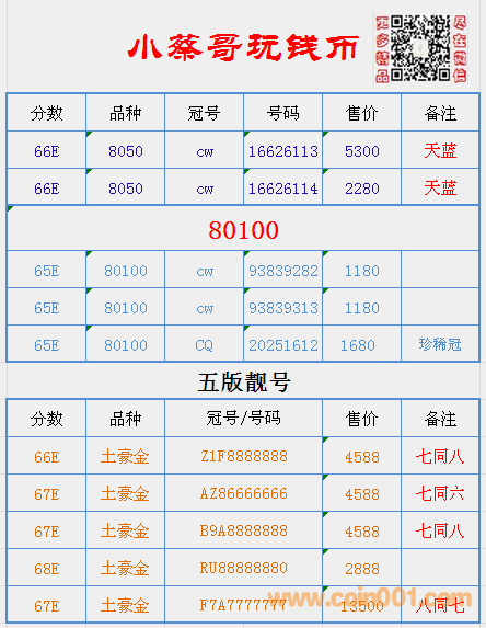 8050天藍(lán)冠CW稀冠,66分 ..