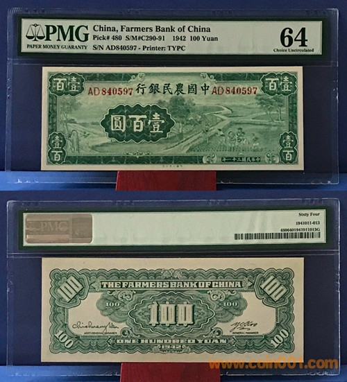 民國31年 農(nóng)民銀行 大業(yè)版 壹佰元插秧 6500元