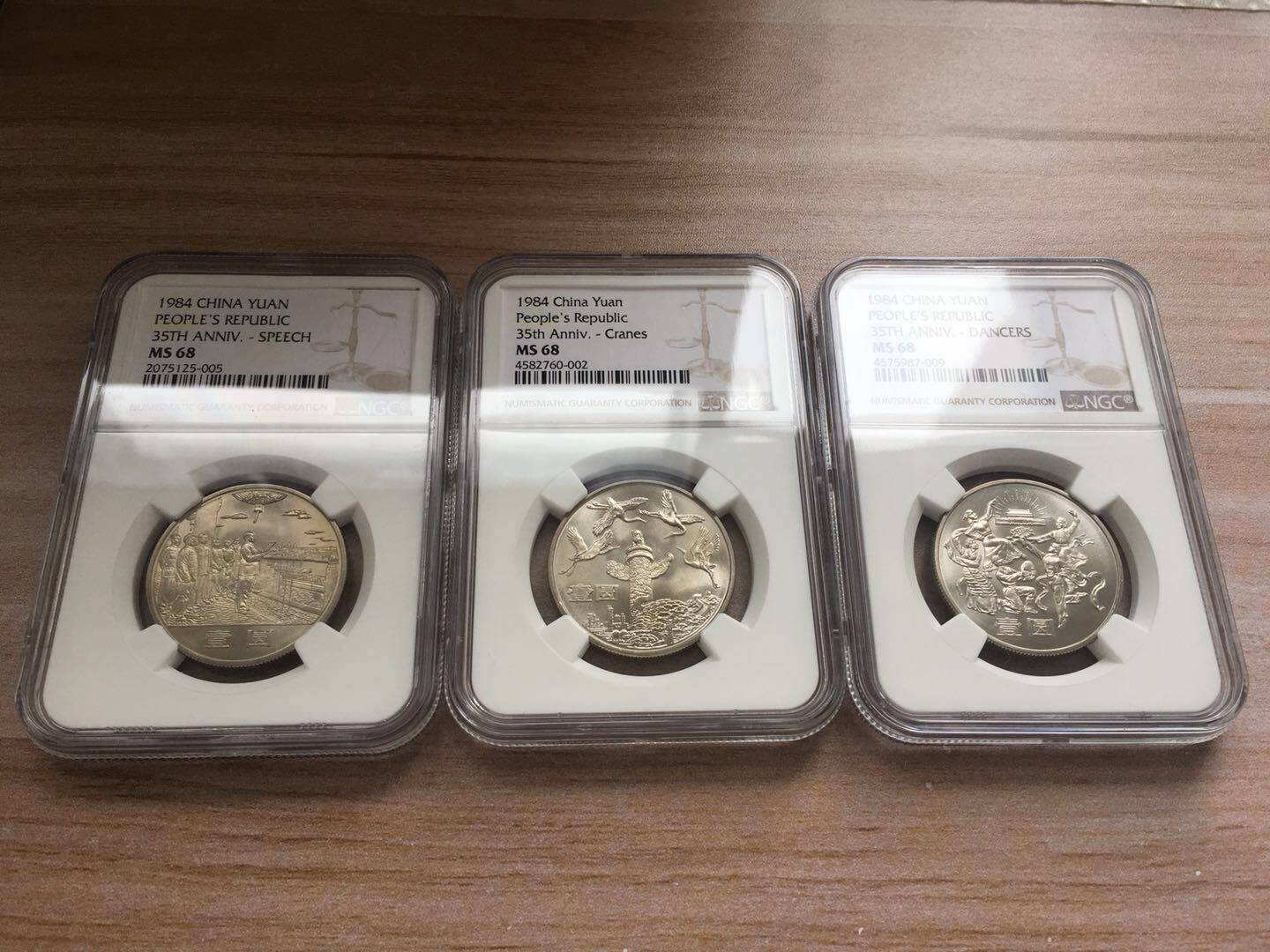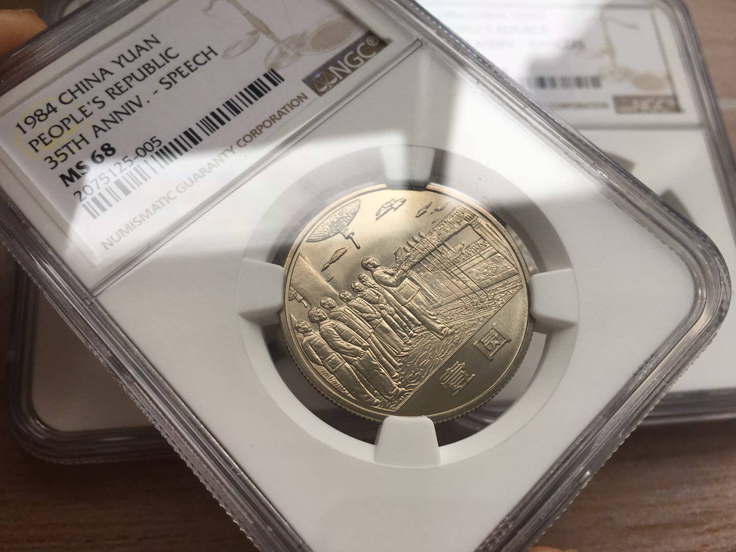 初鑄1984年建國(guó)35周年紀(jì)念幣NGC MS68亞軍分 大典為半精制 黃金彩包漿 歡慶華表帶淡淡原油彩 5999元包順豐 附送原裝配件 最近資金緊張 藏品換藏忍痛出些早期收藏 有喜歡朋友可以聯(lián)系 接受小刀 喜歡帶40米大刀砍價(jià)的勿擾 真心傷不起