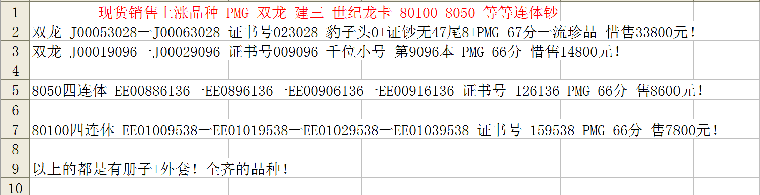 評級普通(精制)紀念幣交易