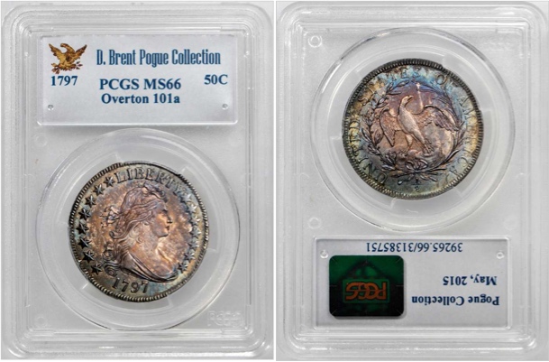 1797年制波浪頭像1/2鷹洋,O-101a PCGS MS 66成交價(jià):152.75萬美元