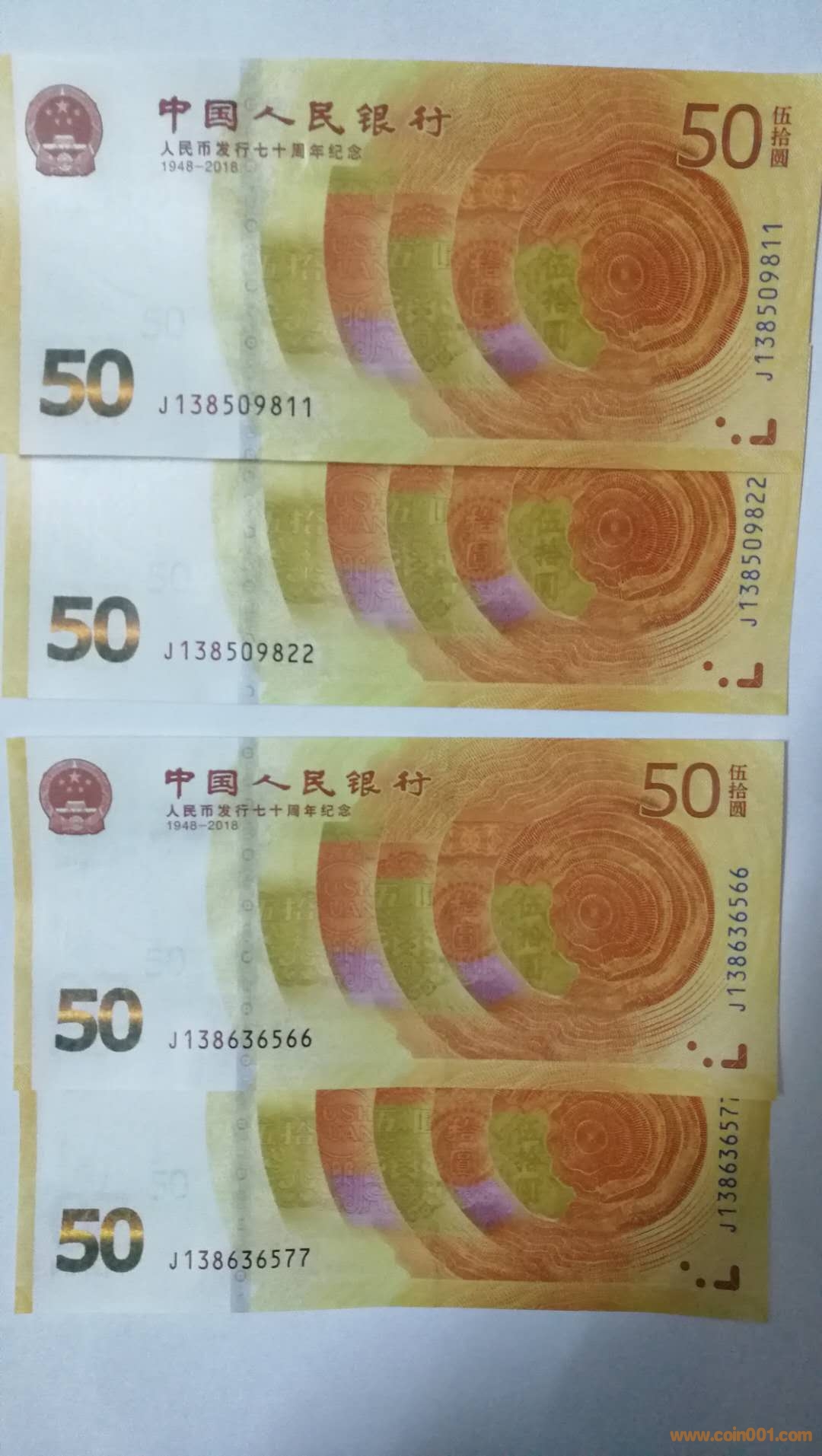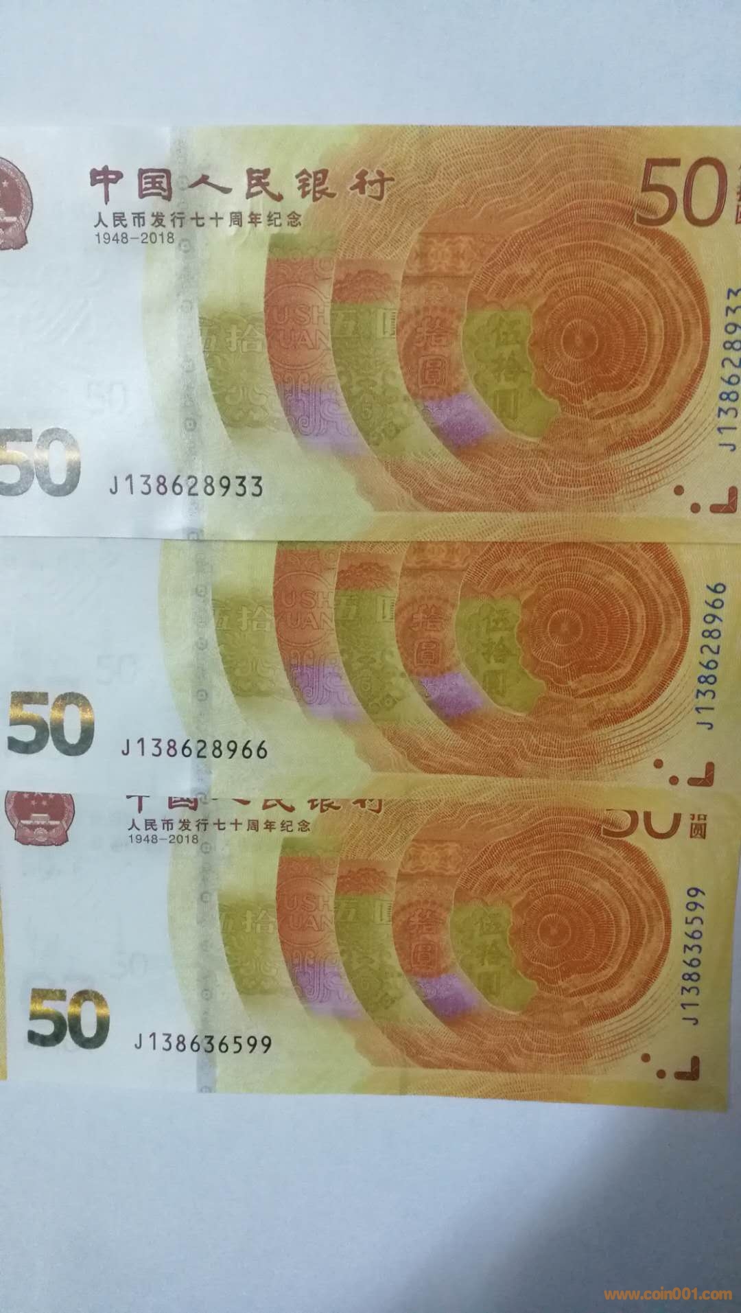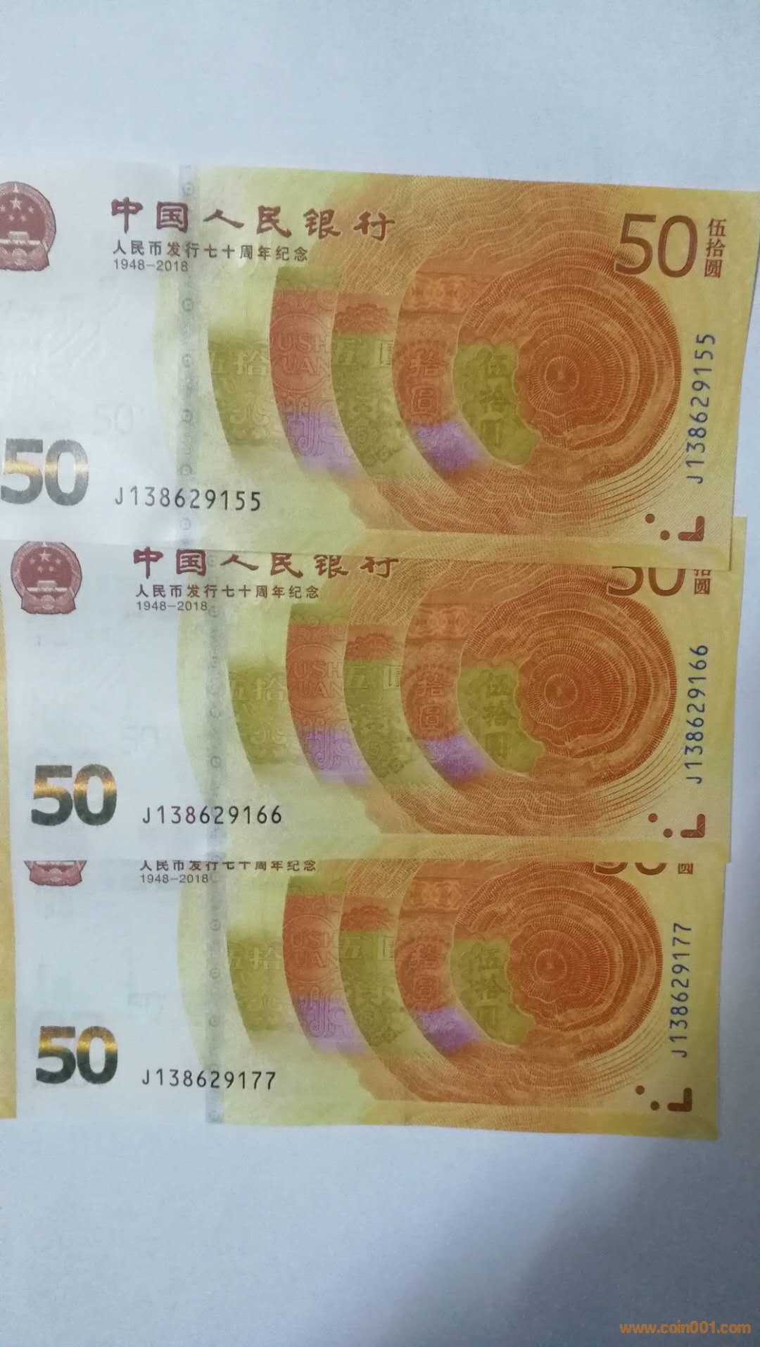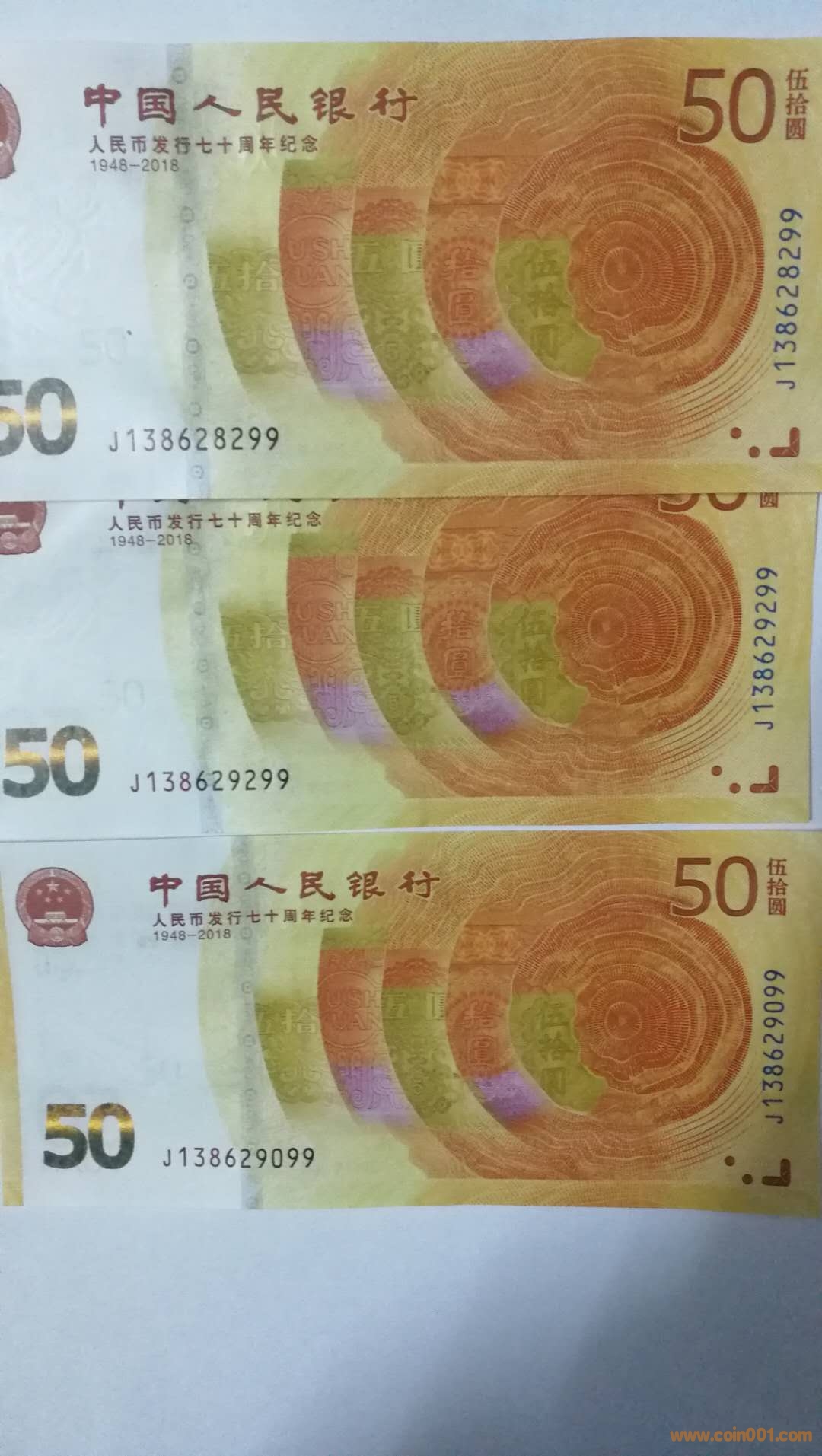 低出70紀(jì)念鈔尾 2同號(hào)散、連等好號(hào)一些。如下: