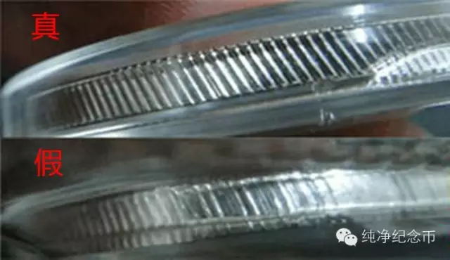 十元面值的熊貓銀幣自2002年起便采用了斜齒防偽工藝,所以一旦看到直齒的2014年熊貓銀幣,那么不用想也知道,必然是假幣無疑了。當(dāng)然現(xiàn)在的假貓也有一部分是斜齒,這個方法只適合做初步鑒別,不過部分銀貓由于工藝的不穩(wěn)定,絲齒上的齒不完整。